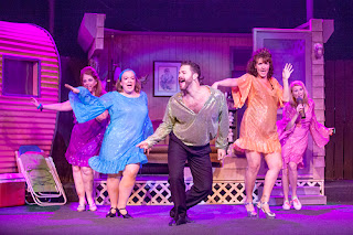 Justin Been's terrific direction maintains a well-paced clip, and our three local yokel "tour guides" are boisterous and wonderful in their roles. Furlow, a fantastic character actor who does southern really well, leads the pack as Betty. Kay Love's "Lin" does a great job with "That's Why I Love My Man", and Jessica Tilghman is very funny as Pickles as well as her additional roles. Jamie Lynn Marble's Pippi has a strong-ass voice, and engages you enough to make you kind of root for her, even though she's "the other woman". Zachary Stefaniak's Norbert Garstecki along with a convincing Lindsey Jones as Jeannie handle their big numbers very nicely and Jones really sells the number, "Panic". Keith Parker Jr.'s Duke doesn't come into the picture until the second act, but he makes quite an impression when he does with the number, "Road Kill". This cast looks good cutting loose with JT Ricroft's lively choreography, and they excel in the ensemble numbers, particularly a Sally Jessy Raphael styled dream sequence and the sparkly act one closer, "Storm's A-Brewin'". They also look appropriately trashy in Alexandra Scibetta Quigley's costumes, and the band handles the 50's styled rock 'n' roll score beautifully.